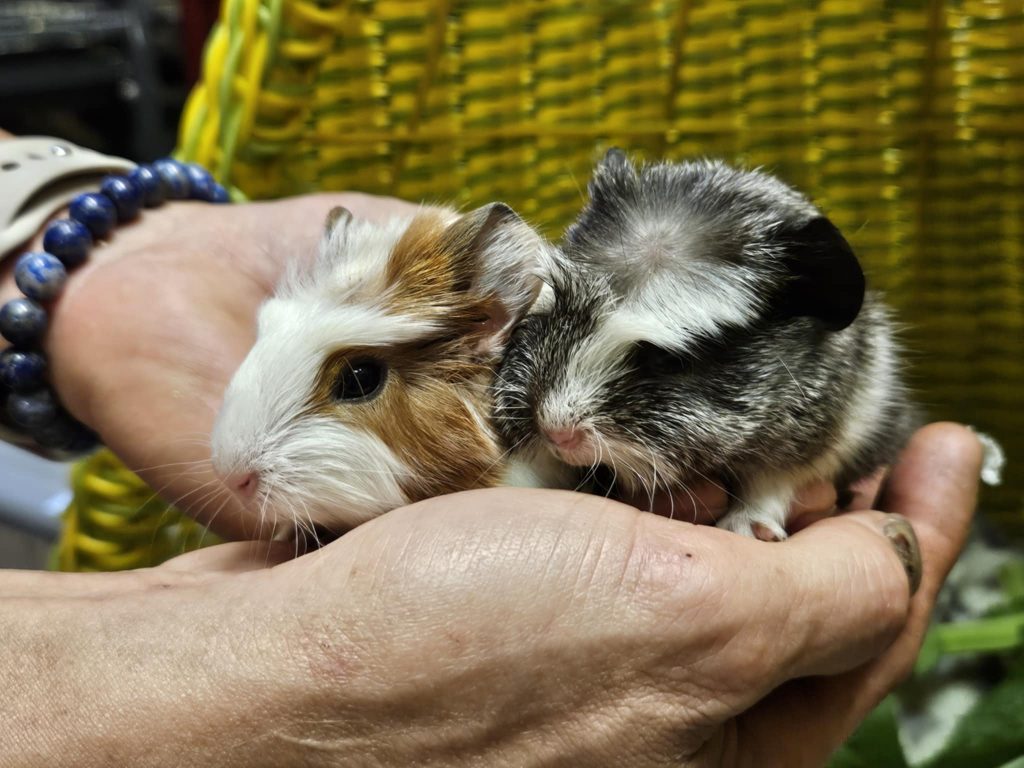 Trois petits bébés cochons d’Inde à crête, disponible pour réservation!